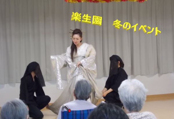 なんと施設長が獅子舞に入り、次長が横笛を吹く・・・。