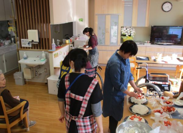 利用者様にケーキのデコレーションをやって頂きました。