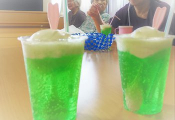 高齢者は脱水になりやすいので、脱水症対策として、メロンクリームソーダを